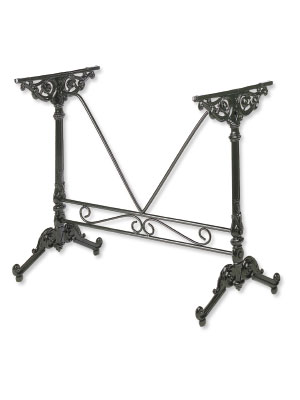 Pie de mesa o velador de aluminio modelo Bar rect. para comedor, terraza o jardín, fabricados con la aleación L-2520, con varilla de unión central decorada forja de hierro zincado. Fabricación bajo pedido de cualquier color o decorado.