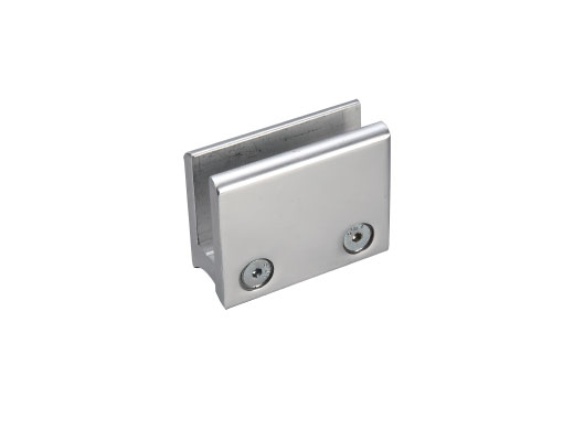 Pinza de aluminio anodizable para trabajos de cerrajería con cristal fabricado con Al 99%. Suministrado en stock en acabado anodizado color inoxidable. Fabricación bajo consulta de otras medidas, terminaciones y colores.